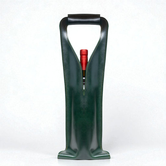 Bolsa de vino de cuero Porta botella piel 100% Mod. (Merlot) Pull up Verde