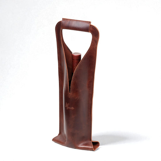 Bolsa de vino de cuero Porta botella piel 100% Mod. (Cabernet) PULL MIEL