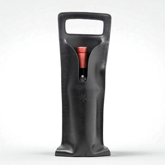 Bolsa de vino de cuero Porta botella piel 100% Mod. (Cabernet) Pull up Negro