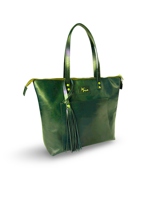 Bolso Tote Cuero Praga plus + *Pull Verde*+ cosmetiquera Gratis
