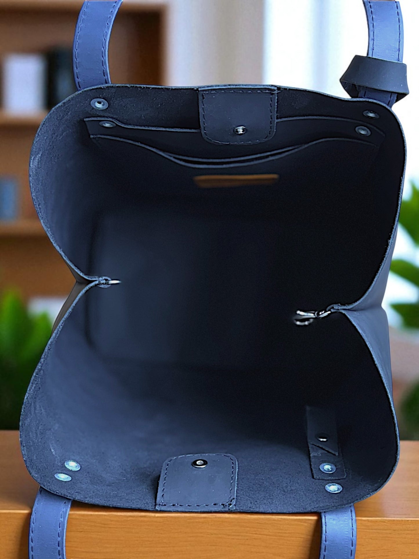 Aporta estilo y versatilidad con el Bolso Tote Praga Plus Doble Vista en piel Crazy azul, diseñado para destacar desde cualquier ángulo. Su estructura firme permite mostrar dos caras exteriores distintas, mientras que los acabados artesanales ofrecen carácter y elegancia.