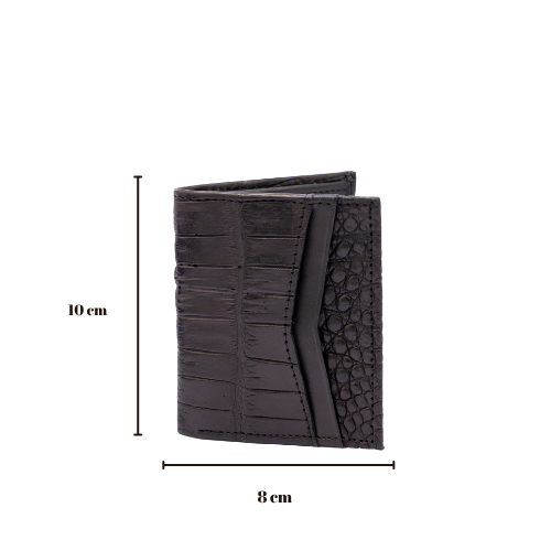 Cartera vertical de cuero con piel exótica y tecnología RFID Mod Azteca (Aligathor Negro)