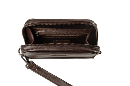 Compartimentos internos: • Doble cierre metálico principal • Tarjetero para hasta 8 tarjetas • Compartimento con cierre para billetes o monedas • Espacio dividido para celular, documentos o llaves