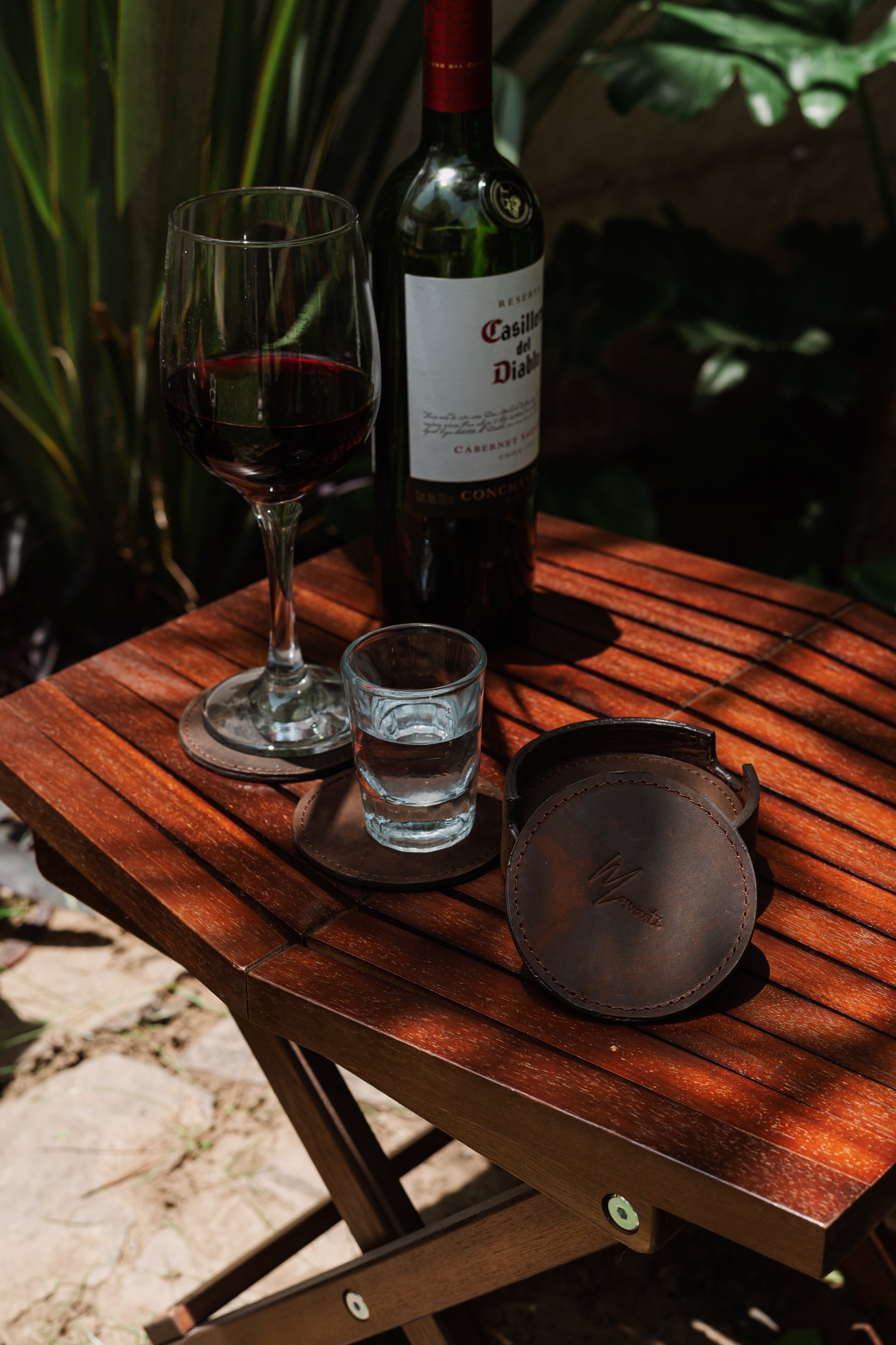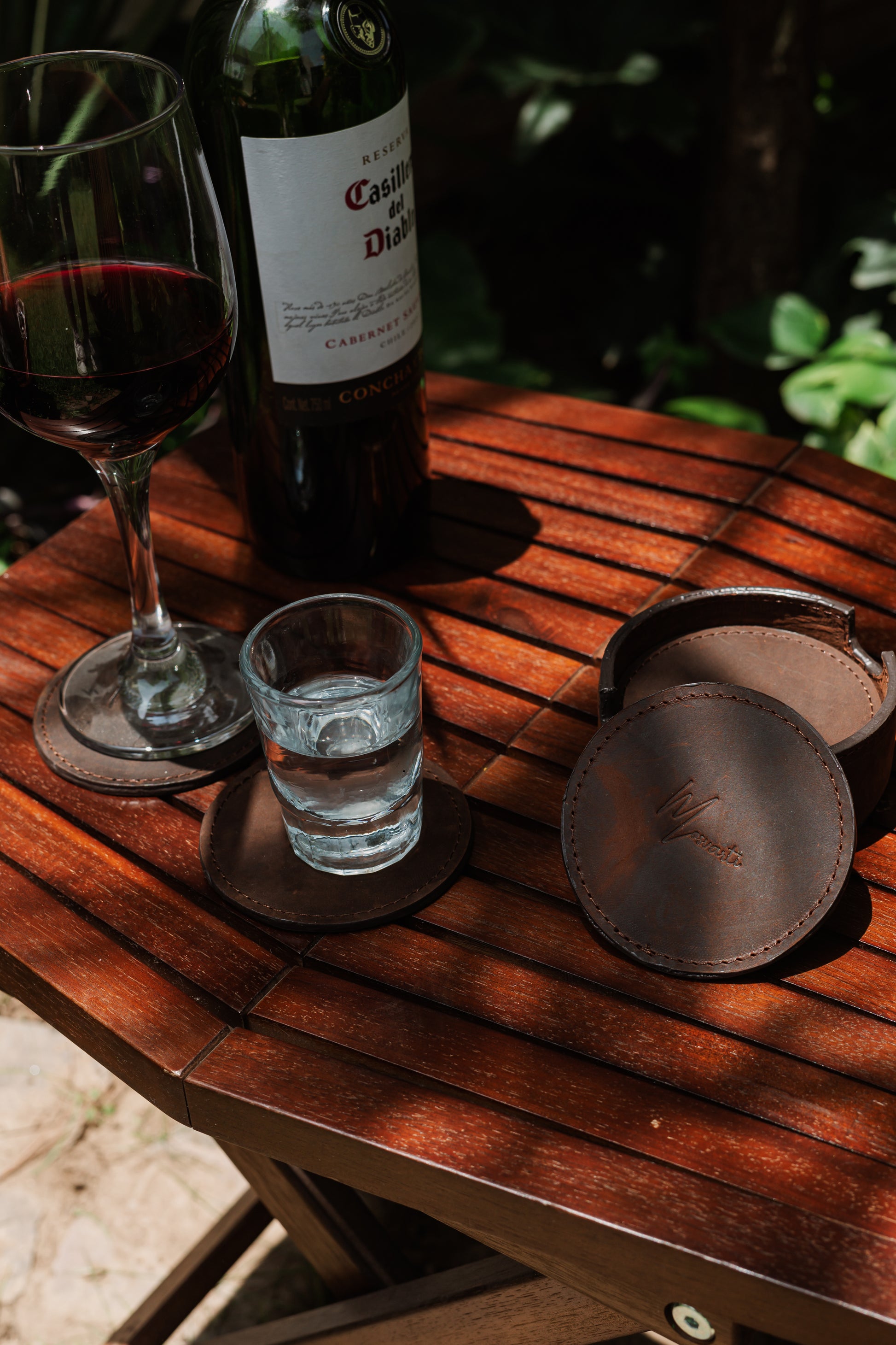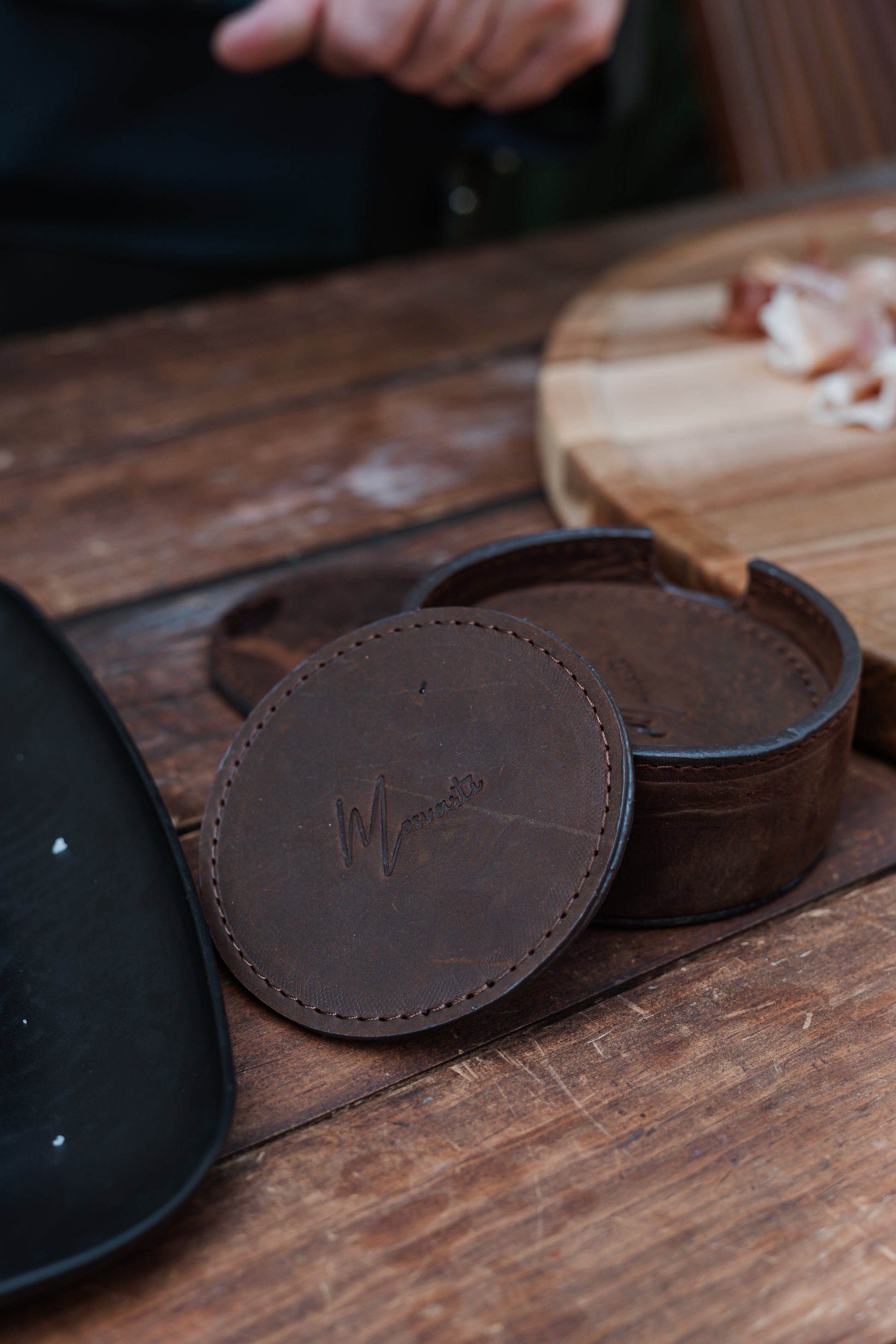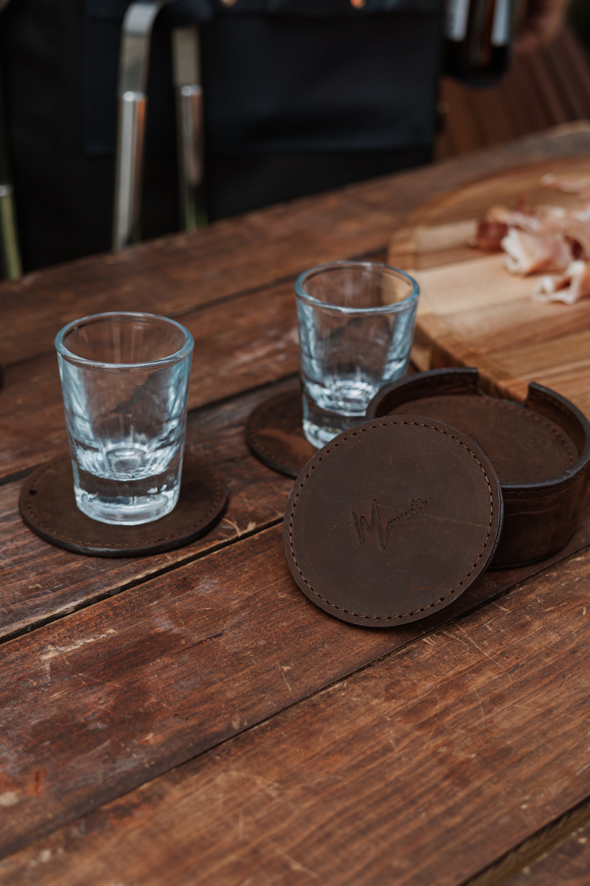 Solicita tu cotización de mayoreo y añade este set de porta vasos Mosvarti de cuero crazy cafe a tu catálogo de artículos artesanales de lujo.