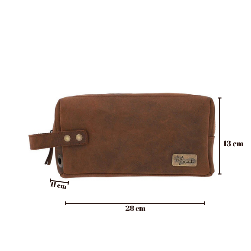 El Neceser Sobaquera Mosvarti Mod España en piel crazy café es un accesorio artesanal diseñado para el caballero moderno que busca funcionalidad y elegancia. Su formato compacto tipo sobaquera permite portar artículos personales con comodidad, ya sea en viajes o para uso diario.