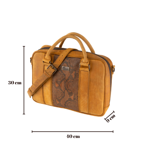 Portafolio 100% Cuero Mod. Holmes ( Frente Pitón Genuino crazy Miel )