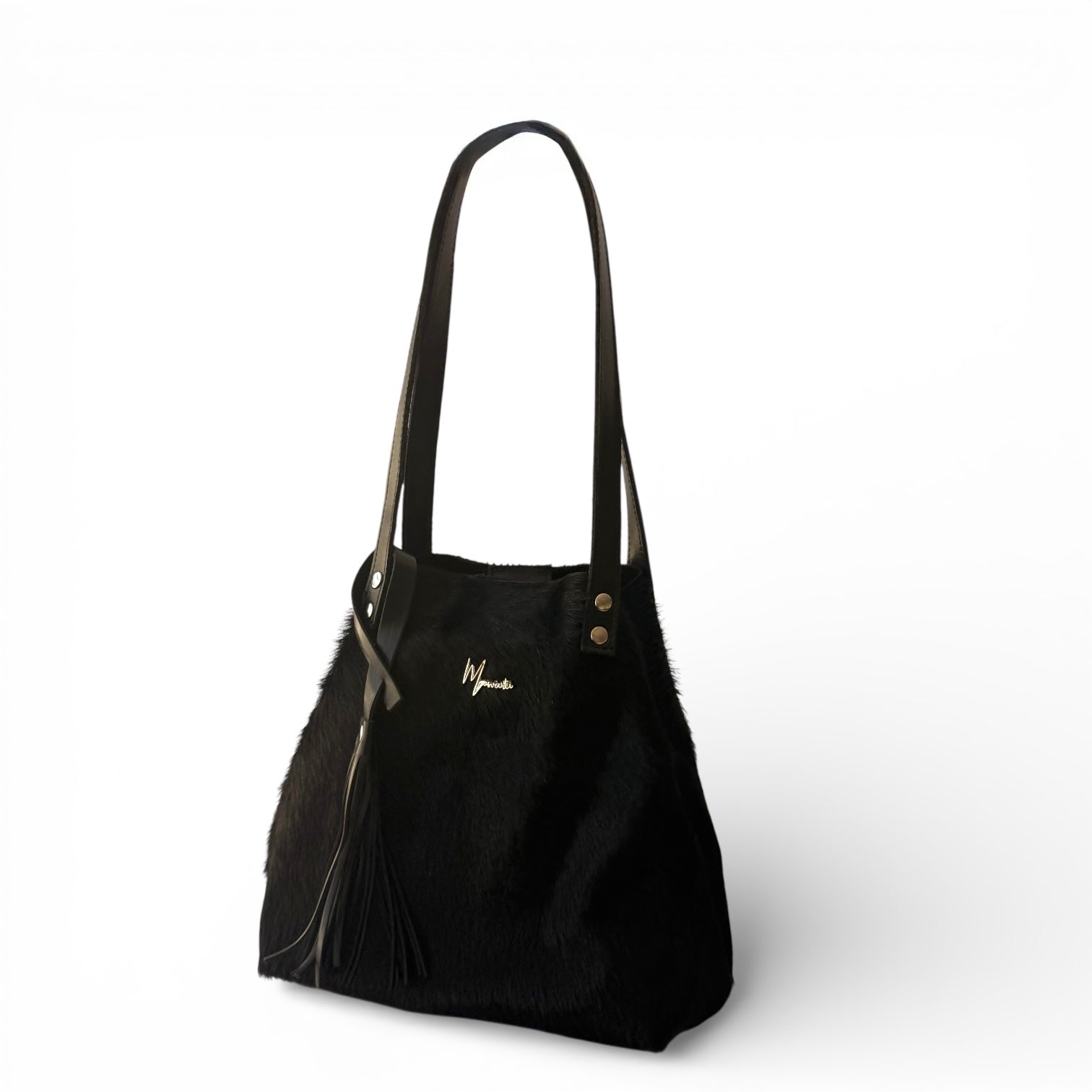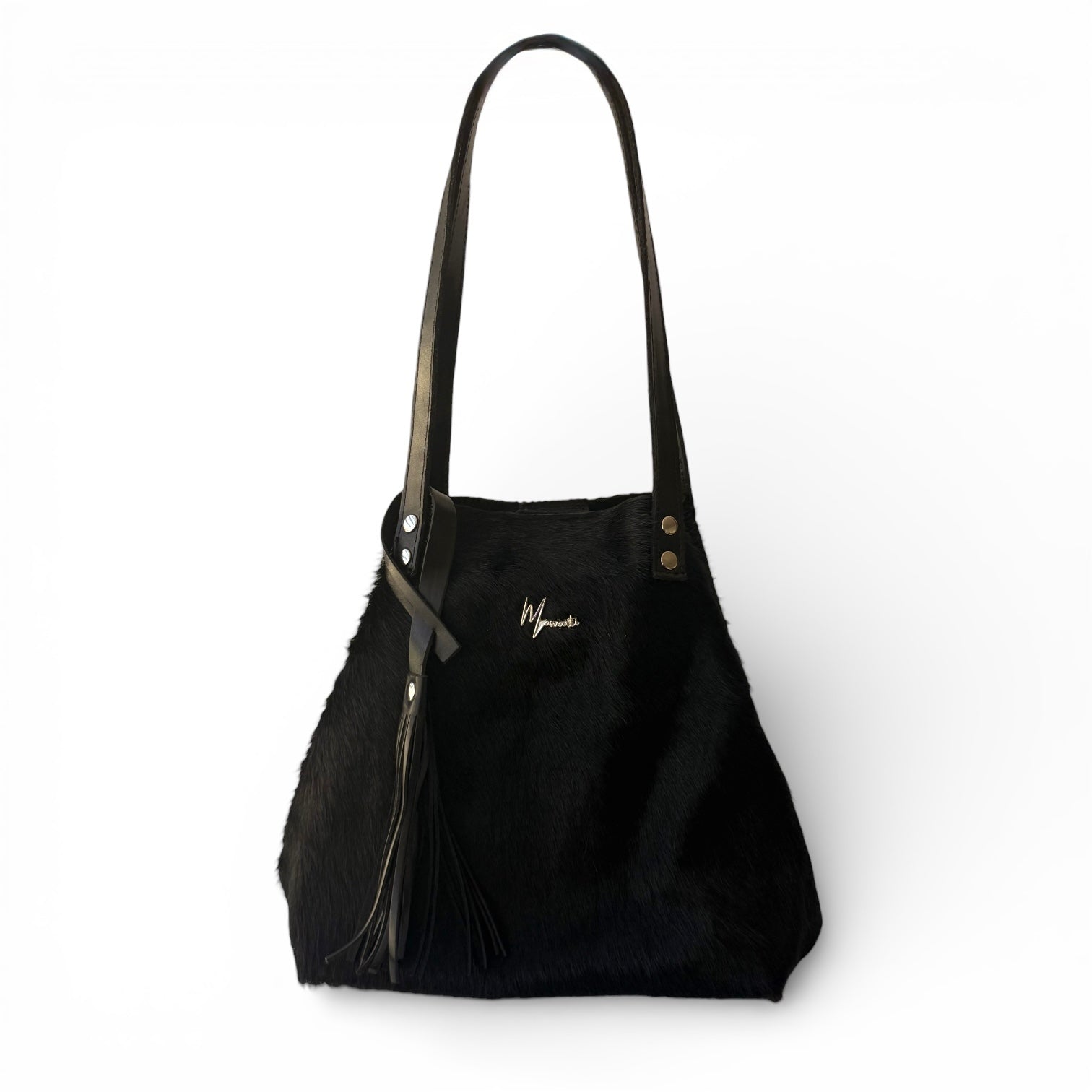Tote Cuero Praga Plus Pelo Res Negro!!